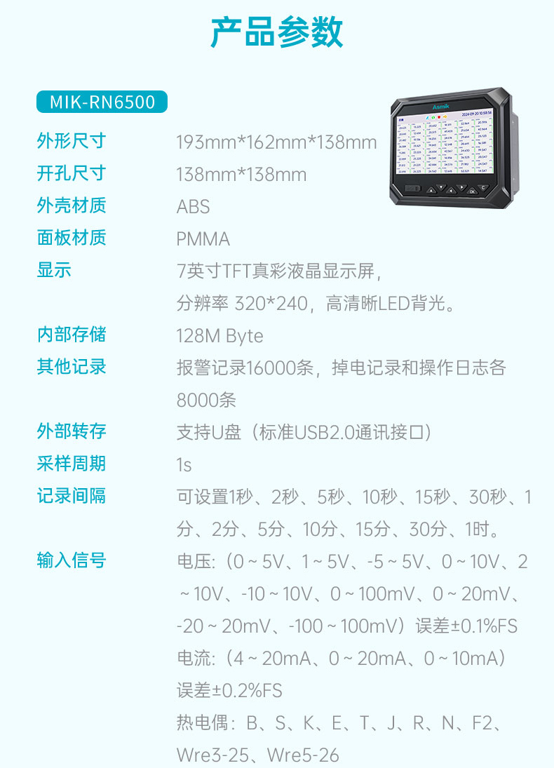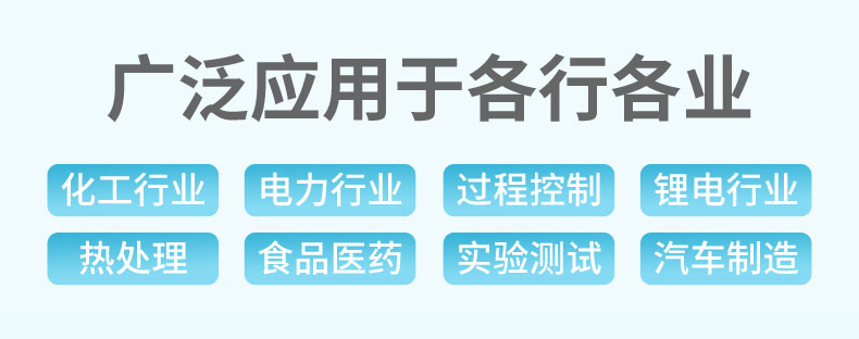 適用場合:本產(chǎn)品為工業(yè)無紙記錄儀,配置分辨率為 1024*600 的 7 英寸 TFT真彩全視角液晶顯示屏??梢越尤腚娏鳌㈦妷?、熱電偶、熱電阻、電阻和頻率(定制)等多種類型工業(yè)標(biāo)準(zhǔn)信號,實(shí)現(xiàn)溫度、濕度、壓力、液位、流量的顯示、記錄、超限監(jiān)控、報(bào)表、數(shù)據(jù)通訊、信號變送以及流量累積、流量溫壓補(bǔ)償?shù)裙δ?。可?yīng)用于冶金、石油、化工、建材、造紙、電力、食品、制藥、工業(yè)水處理等行業(yè)。
